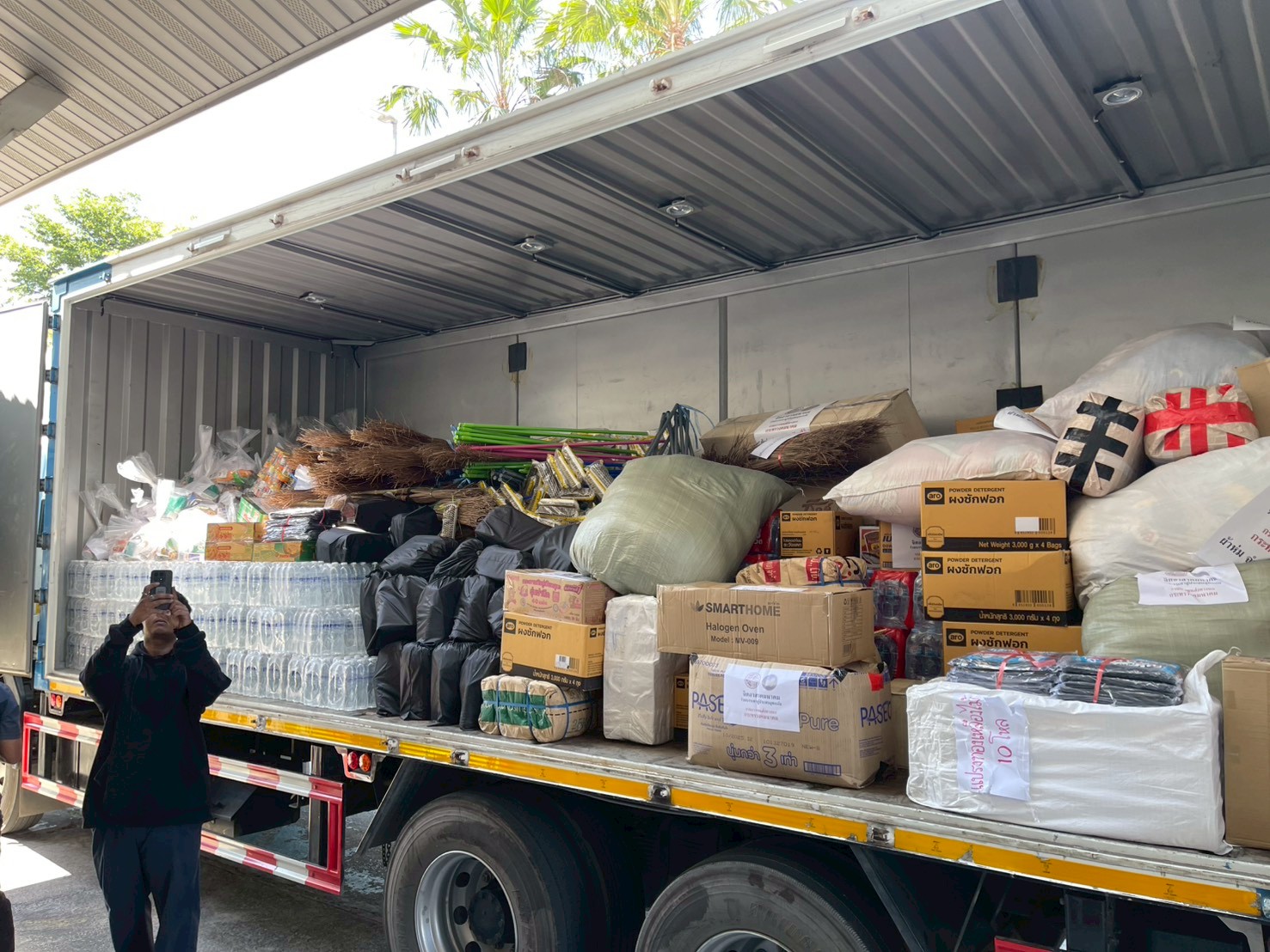 ถุงยังชีพประกอบด้วย บะหมี่กึ่งสำเร็จรูป น้ำดื่ม อาหารแห้ง ผ้าอนามัย และยาสามัญประจำบ้าน รวมถึงอุปกรณ์ทำความสะอาดหลังน้ำลด เช่น ไม้ขัดพื้น แปรงขัดพื้น น้ำยาทำความสะอาด ถุงดำ และถุงมือยาง เป็นต้น เพื่อให้ประชาชนสามารถใช้ฟื้นฟูที่อยู่อาศัยและสภาพแวดล้อมได้อย่างเร่งด่วนหลังน้ำลด